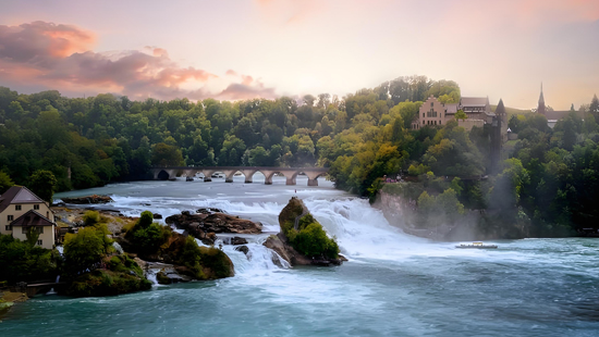 随后前往莎夫豪森市观赏气势浩瀚、犹如万马奔腾的莱茵河瀑布。此西欧最大瀑布急流汹涌甚为壮观,气势动人心魄。