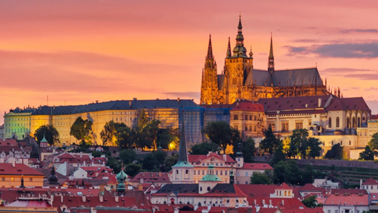 游毕前往捷克首府,黄昏安抵伏尔塔瓦河畔有中世纪宝石之美誉的东欧古都布拉格。市内古老建筑的尖塔圆顶在夕阳照耀下显得金碧辉煌,因而又被称为金色之城,全城散发着古雅的气息。